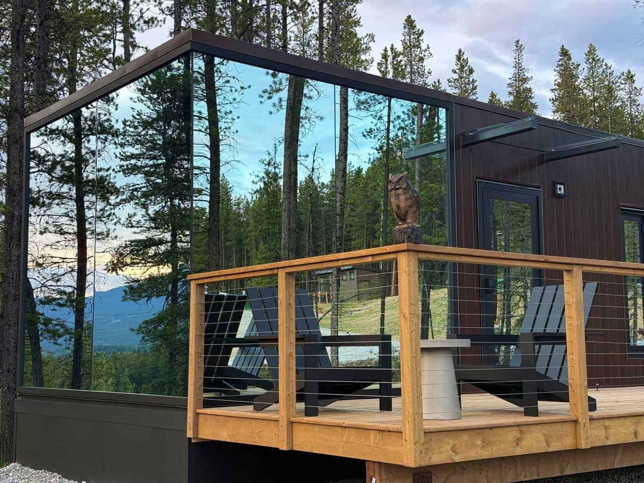 The Looking Glass combines striking architecture with modern comforts, offering a private retreat that blends seamlessly into its surroundings. With mirrored walls that reflect the beauty of nature, it creates an unforgettable experience for guests seeking luxury, privacy, and connection to the outdoors.